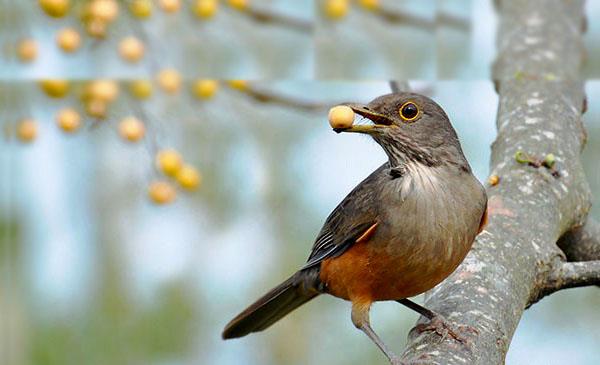 棕腹鶇:別名,為雀形目、鹟科、鶇屬鳥類,原產(chǎn)于南美洲阿根廷、玻利維亞、巴西、巴拉圭、烏拉圭,棲息于樹木繁茂地區(qū)、次生林、森林邊緣、灌叢、稀樹草原,也出現(xiàn)在農(nóng)耕區(qū)、村莊、空曠地、公園、花園,包括城市所在的市區(qū)和郊區(qū)的草坪上。在干旱地區(qū),活動(dòng)局限于水源附近。在玻利維亞從海平面到海拔2200米,在巴西南部可以上達(dá)海拔2600米的高度。1818年命名,共2個(gè)亞種。