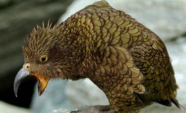 啄羊鸚鵡:別名深山鸚鵡,為鸚形目、鸚鵡科、啄羊鸚鵡屬鳥類,原產(chǎn)于大洋洲澳大利亞、新西蘭、塔斯馬尼亞及其附近島嶼,棲息于海拔600-2000m的山區(qū)森林、高地稀樹灌從。1856年命名,無(wú)亞種。由于時(shí)常發(fā)出Keeaa的沙啞叫聲而得名。啄羊鸚鵡有著強(qiáng)烈的好奇心,看到任何一樣新東西都要設(shè)法弄個(gè)明白,因此它們便在當(dāng)?shù)氐木用裰辛粝铝藧壅衣闊┑牟缓妹暋?/p>