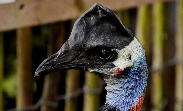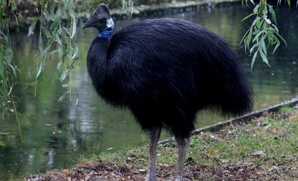 鶴鴕科中體型最小的食火雞,擁有粗糙的黑色下垂的發(fā)狀羽毛。翅膀退化弱小,不會飛行。頭部和頸部裸露,缺少羽毛,顏色為藍色和紅色。頭頂上有一個角質(zhì)的頭冠。與同屬中的其他二種鶴鴕相比,脖子上沒有肉垂。