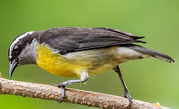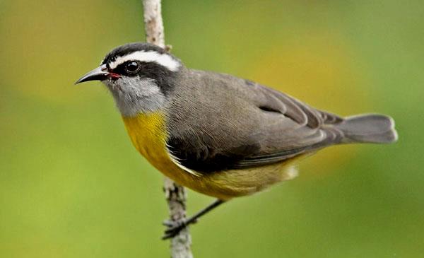 波多黎各國鳥,體型較小,眼部上方有一條非常明顯的白色眉紋,背部羽色藍灰,胸部羽毛艷黃,對比十分強烈。喙部明顯的向下彎曲,喜食各種水果及各種小型昆蟲。