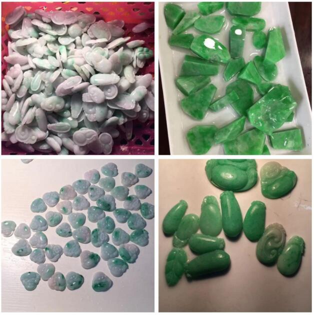 2,表面看光澤:經(jīng)過(guò)酸洗注膠處理的帝王綠,通常光澤不夠清亮,有酸蝕紋。色澤不自然,過(guò)于濃艷,或分布不均勻。