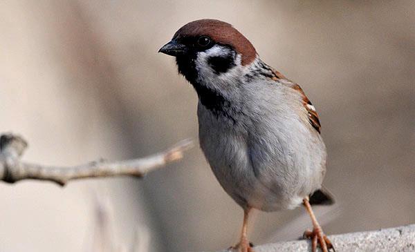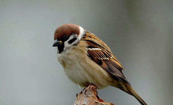麻雀:別名家雀_霍雀_瓦雀_只只_嘉賓_硫雀_老家賊_歐亞樹(shù)麻雀,為雀形目、雀科、麻雀屬鳥(niǎo)類(lèi),原產(chǎn)于歐亞大陸的大部分地區(qū),從大西洋海岸,包括英倫三島,往東到太平洋岸鄂霍次克海、薩哈林島、庫(kù)頁(yè)島,最北出現(xiàn)挪威北緯70度左右。棲息于海拔300-3500m,主要為人類(lèi)居住環(huán)境,如城鎮(zhèn)、鄉(xiāng)村、山地、平原、丘陵、草原、沼澤和農(nóng)田。1758年命名,共10個(gè)亞種。一般均為地方性留鳥(niǎo),在當(dāng)?shù)胤敝场?/p>