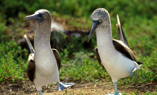 一夫一妻。繁殖期間,雄鳥會不停地左右抬起那雙醒目的藍(lán)色大腳,在這求偶舞期間它還會張開上揚雙翅,來吸引雌鳥的注意,觸摸對方的鳥喙。巢是建立在裸露的地面。一窩2-3個卵,通常在產(chǎn)完第一枚卵后,相隔6天左右才產(chǎn)第二枚卵。雌雄鳥輪流孵卵,孵蛋期41-45天。小鳥羽毛豐滿約為102天,而依賴于成鳥哺育要另加56天。