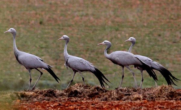 藍鶴:別名,為鶴形目、鶴科、蓑羽鶴屬鳥類,原產于非洲南非特有物種,唯獨有一個小分支,遠離它們南方的“表親”,北上棲息在納米比亞的埃托沙鹽沼地。藍鶴也會季節(jié)性地跨越國界,飛到鄰近的萊索托、斯威士蘭、博茨瓦納,甚至津巴布韋等國家,偶爾還會在這些地方筑巢。不過,可以肯定的是,99%的藍鶴是以南非為家的。