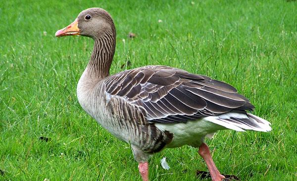 灰雁:別名沙雁_沙鵝_灰腰雁_紅嘴雁_黃嘴灰鵝,為雁形目、鴨科、雁屬鳥類,原產(chǎn)于北美洲、歐洲、亞洲,野生于富有蘆葦和水草的淡水湖泊、水庫、河口、水淹平原、濕草原、沼澤和草地。1758年命名,共2個(gè)亞種。我國3-4月于黑龍江、內(nèi)蒙古、甘肅、青海、新疆等北部地區(qū)繁殖,9月遷往南方越冬。飛行時(shí)兩翅扇動(dòng)緩慢,顯得有些笨拙,但較有力,不慌不忙,徐徐而飛,成單列或V字形隊(duì)形。飛行高度很高,通常晚上遷徙,白天休息和覓食。有時(shí)邊飛邊叫,鳴聲宏亮、清脆而高。有遷徙的習(xí)性,遷飛距離也較遠(yuǎn)。