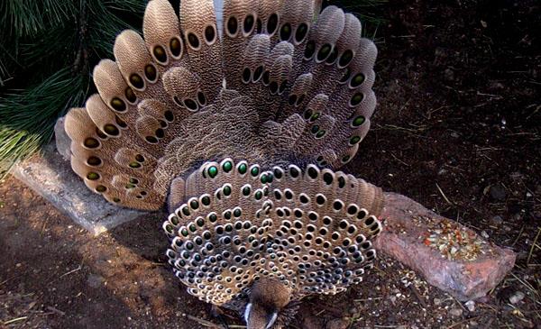 緬甸國(guó)鳥(niǎo),由于羽色絢爛,形態(tài)特殊,肉質(zhì)鮮美,可人工飼養(yǎng)合理開(kāi)發(fā)利用。上背、翅膀和尾羽端部具紫色或翠綠色金屬光澤的絢麗的眼狀斑,極為醒目,與孔雀尾羽的形狀、功能非常相似,只小了很多。