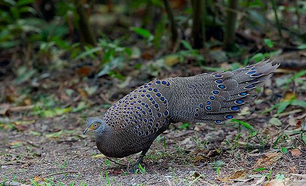 灰孔雀雉:別名,為雞形目、雉科、灰孔雀雉屬鳥(niǎo)類,原產(chǎn)于亞洲南部,包括孟加拉國(guó)、不丹、柬埔寨、中國(guó)、印度、老撾、緬甸、泰國(guó)和越南。棲息于海拔1500m左右的熱帶雨林、季雨林及竹林中,活動(dòng)于闊葉林下灌叢草地上、森林茂密、林下植被較發(fā)達(dá)的陰濕地面。1758年命名,共4個(gè)亞種。
