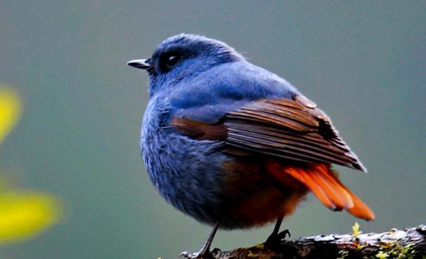 雄鳥羽色鮮艷,特點(diǎn)十足,通體暗灰藍(lán)色,翅黑褐色,尾羽和尾的上、下覆羽均栗紅色,對比十分鮮明。當(dāng)有人干擾時(shí),則緊貼水面沿河飛行。常邊飛邊發(fā)出“吱-吱”的鳴叫聲,聲音單調(diào)清脆。