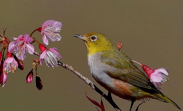 紅肋繡眼鳥:別名白眼兒鳥_粉眼兒鳥_褐色肋繡眼鳥_紅肋白目眶鳥,為雀形目、繡眼鳥科、繡眼鳥屬鳥類,原產(chǎn)于亞洲東部及南部,中國、俄羅斯、朝鮮、韓國、柬埔寨、老撾、緬甸、泰國、越南,常見于海拔1000m以上原始林及次生林。繁殖于中國東北,越冬往南遷徙。1863年命名。