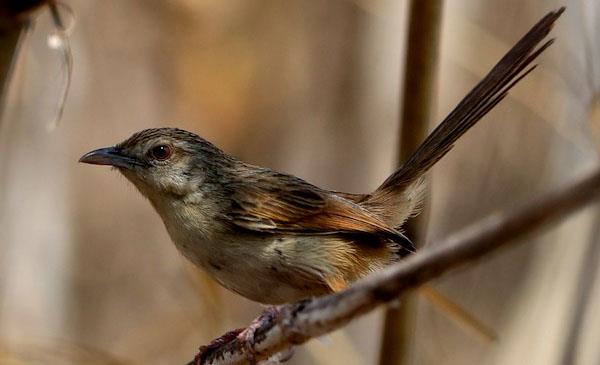 褐山鷦鶯:別名滇東亞褐山鷦鶯,為雀形目、扇尾鶯科、鷦鶯屬鳥類,原產(chǎn)于亞洲東南部,中國(guó)、柬埔寨、印尼、老撾、緬甸、泰國(guó)、越南。野生于海拔1500m以下的熱帶地區(qū)的田壩邊緣、低山丘陵、灌叢草地。1928年命名,共4個(gè)亞種。羽色與山鷦鶯相似,但較多棕色,體形也顯著較山鷦鶯大。