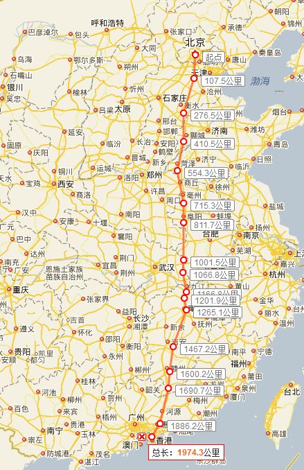 1、京九線經(jīng)過的站點(diǎn)有(由北到南排序):