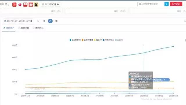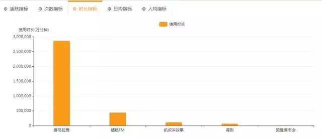 從下圖的QM數(shù)據(jù)報告也能明顯看出,喜馬拉雅在活躍用戶規(guī)模和用戶使用時長方面有優(yōu)勢。