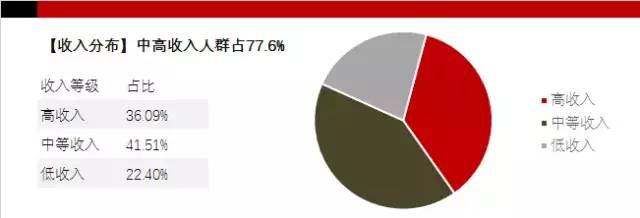 另從相關(guān)數(shù)據(jù)得知喜馬拉雅用戶群收入占比,從上圖可以看出:中高收入人群占77.6%。