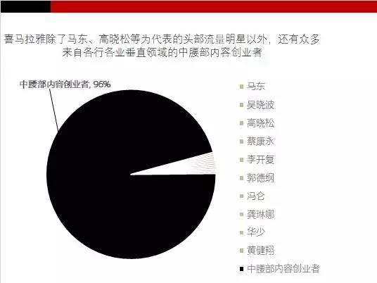 平臺主播人群超過500萬,其中以馬東、郭德綱等為代表的加V認(rèn)證的主播占比超過4%,數(shù)量達(dá)到20萬人;除了馬東、高曉松等為代表的頭部流量明星以外,還有眾多來自各行各業(yè)垂直領(lǐng)域的中腰部內(nèi)容創(chuàng)業(yè)者利用喜馬拉雅為自己的內(nèi)容變現(xiàn)。