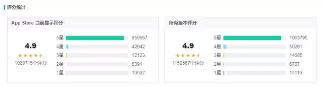 在APP評分中,當(dāng)前顯示以及過往所有版本綜合評分為4.9分,且近三個月的四星以上好評上升,四星以下差評數(shù)量沒有明顯的上升趨勢,總體好評率是增加的。