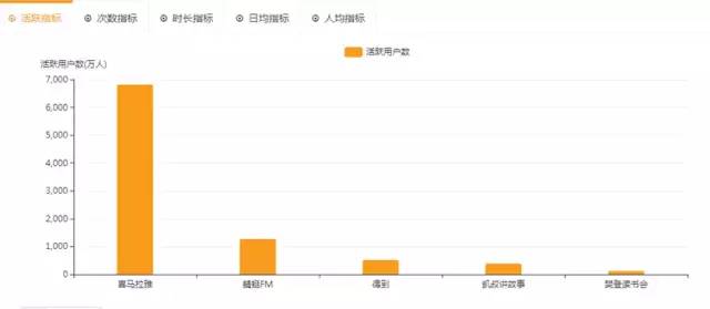 過去一年半移動音頻行業(yè)整體月活增長超過 5000w,其中有 4000w來自喜馬拉雅的月活增長數(shù)據(jù),喜馬拉雅的活躍用戶貢獻(xiàn)占比達(dá)80%。