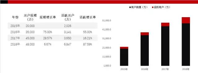 喜馬拉雅僅用2年時間用戶數(shù)破2億,2015到2016年的用戶增長率達(dá)75%,同時2017到2018年的活躍用戶增長率為87.59%。