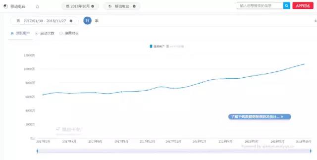 按照常規(guī)來說,喜馬拉雅平臺的用戶特征與整個行業(yè)用戶的分布應(yīng)該吻合度極高,所以我又繼續(xù)從QM等出品的數(shù)據(jù)報告中整理出了喜馬拉雅平臺的用戶趨勢。