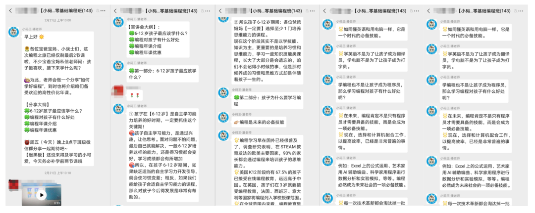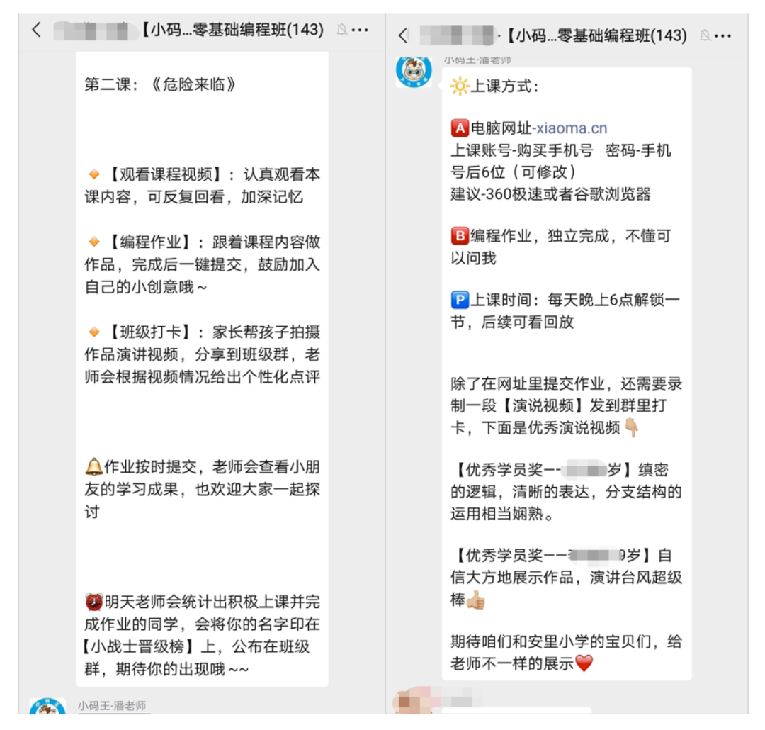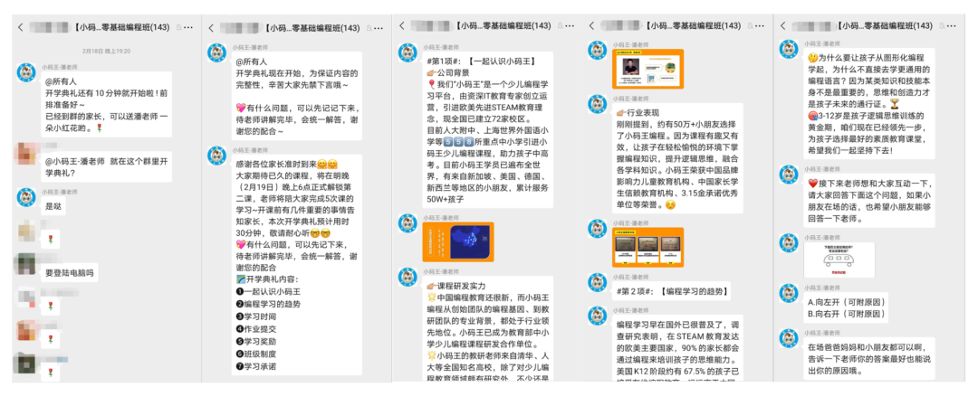對于小碼王第一次純線上嘗試從體驗課到正價課的模式,我覺得它的社群運營流程很不錯。硬要挑的話,建議進群環(huán)節(jié)的進群歡迎語,講清楚三件事情:上課時間+上課方式+社群規(guī)則,一次說完整;小碼王這里是分多次去講述的。