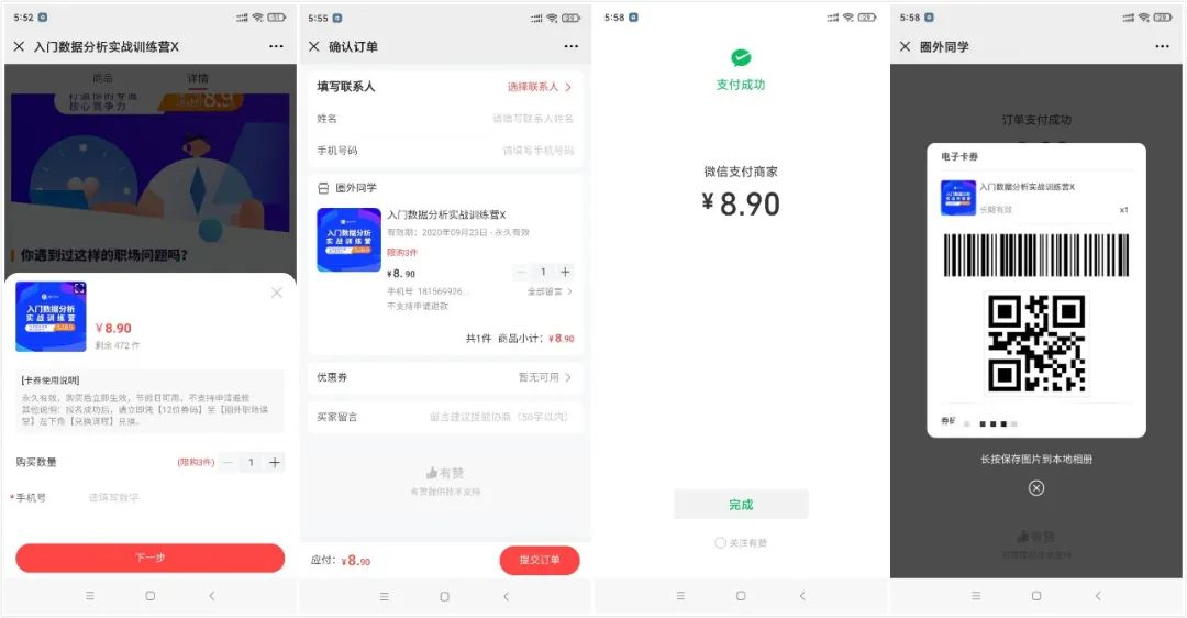完成這一行為的能力包括時間、金錢、體力、腦力、社會偏差、非常規(guī)性,這里課程的價格比較比較低,基本沒有什么新的阻礙。唯一不太好的一點就是付款到入群的路徑有點繁瑣,而且免費課程和低價課程不能同時學習,報名了其中一個課程之后,另一個課程也就暫時不能入群,購買頁面對于這塊也沒有進行提示,這一步可能會流失一部分的用戶,而且用戶對于產(chǎn)品的第一印象也不太好。