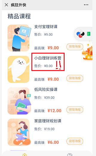 拿9元小白理財(cái)訓(xùn)練營課程(限時0元)的海報(bào)為例: