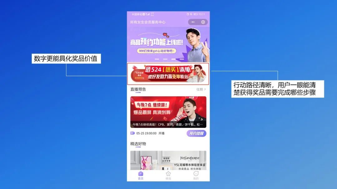 福利向來是活動的敲門磚,本次618預售李佳琦直播間率先以曬“想買”清單打開話題熱度。借助最高價值49999元的免單福利為最終獎品,刺激用戶邀請好友為自己助力,且名額設置10名,滿足“稀缺性、高價值、強社交”三大屬性,將活動效果發(fā)揮極致。