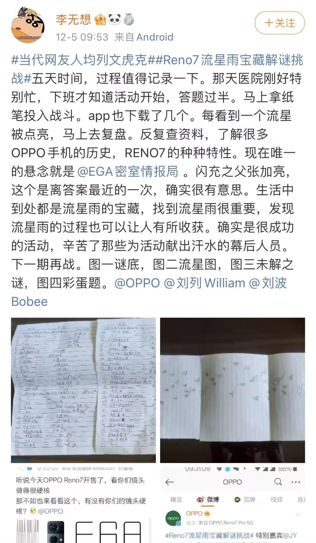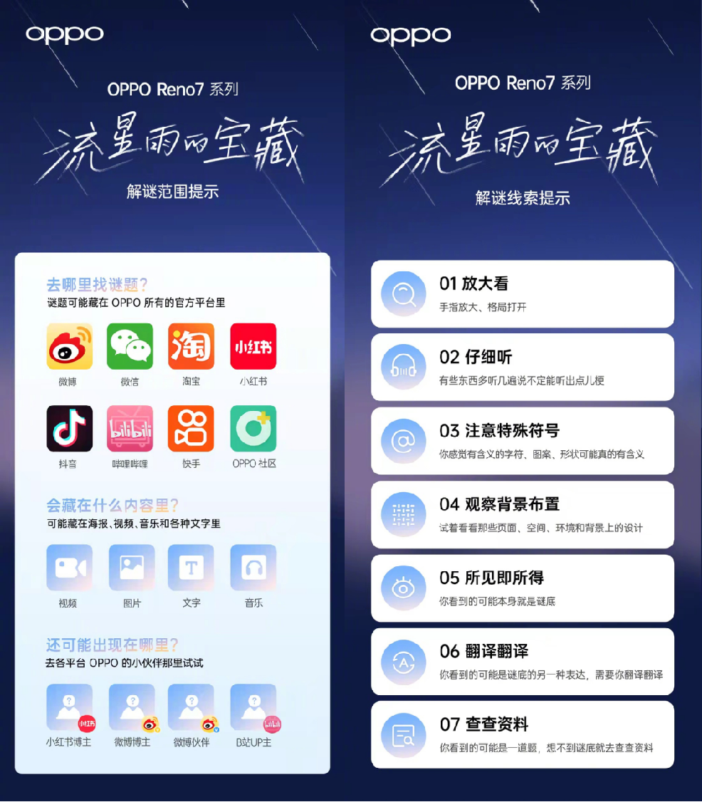 近日,OPPO手機(jī)在新品Reno7發(fā)布之際,發(fā)起了一場(chǎng)「流星雨的寶藏」解謎挑戰(zhàn)活動(dòng)。