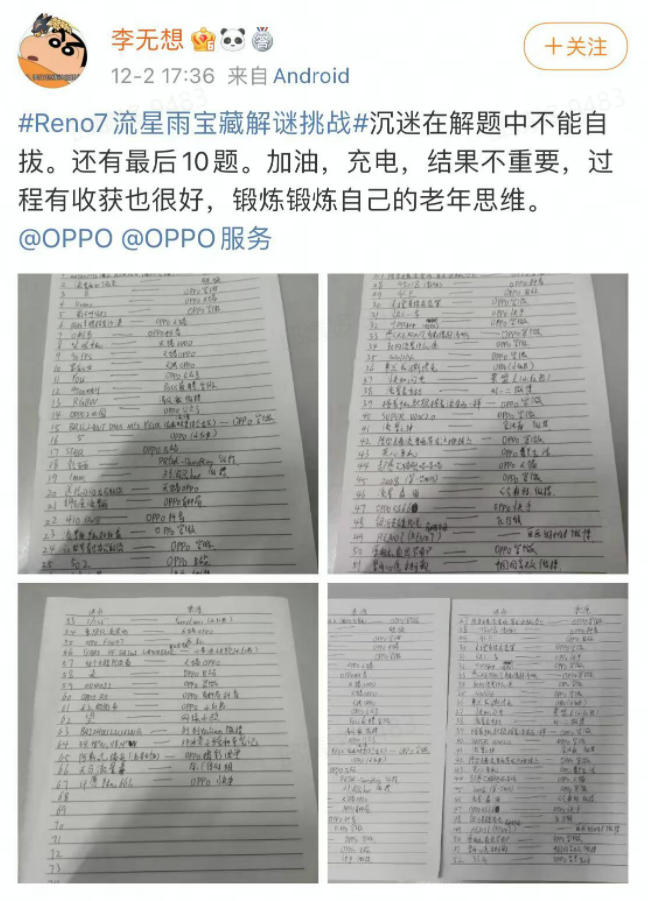 而OPPO與驚人院合作發(fā)布的這則海報(bào)謎題,更是在官方線索還未發(fā)布時(shí)就被高能網(wǎng)友三分鐘內(nèi)破解,這波速度,可謂是出題的趕不上答題的。