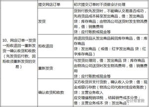 借:銷售費(fèi)用 貸:其他貨幣資金-支付寶賬戶存款6、好評(píng)返現(xiàn)時(shí); 借:銷售費(fèi)用 貸:銀行存款(其他貨幣資金-支付寶賬戶存款)7、客戶收貨后破損或不滿意時(shí);借:營(yíng)業(yè)外支出 貸:銀行存款(其他貨幣資金-支付寶賬戶存款)三、費(fèi)用相關(guān)賬務(wù)處理:1、固定費(fèi)用 ① 保證金(押金); ② B店的技術(shù)服務(wù)費(fèi); ③ 旺鋪費(fèi); ④ 數(shù)據(jù)魔方費(fèi); ⑤ 營(yíng)銷工具費(fèi);2、銷售費(fèi)用 ① 推廣費(fèi);a、充值時(shí): 借:其他貨幣資金-賬戶存款 其他貨幣資金-鉆展賬戶存款 貸:其他貨幣資金-支付寶賬戶存款b、使用消耗時(shí): 借:銷售費(fèi)用 貸:其他貨幣資金-直通車賬戶存款 其他貨幣資金-鉆展賬戶存款② 傭金; 借:銷售費(fèi)用 貸:其他貨幣資金-支付寶賬戶存款3、管理費(fèi)用4、財(cái)務(wù)費(fèi)用四、稅務(wù)相關(guān)賬務(wù)處理五、財(cái)務(wù)報(bào)表、分析報(bào)告擴(kuò)展資料:交易類型及流程:網(wǎng)店訂單→在線付款至擔(dān)保方→發(fā)貨→確認(rèn)收貨→擔(dān)保方清算貨款(先付款后發(fā)貨、有第三方擔(dān)保、正常交易)1、提交網(wǎng)店訂單初次提交訂單時(shí)不須做會(huì)計(jì)處理2、在線付款至擔(dān)保方該筆款項(xiàng)未能確定最終是否流入企業(yè),此時(shí)不在線付款至擔(dān)保方不作會(huì)計(jì)處理;3、發(fā)貨發(fā)貨仍未能確定能否成交,不能確認(rèn)收入和成本,先從庫(kù)存商品轉(zhuǎn)為發(fā)出商品,借 : 發(fā)出商品貸 : 庫(kù)存商品; 由物流公司送貨時(shí)發(fā)生物流費(fèi)用,會(huì)計(jì)分錄如下:借 : 銷售費(fèi)用貸 : 應(yīng)付賬款或現(xiàn)金等4、確認(rèn)收貨交易成功可以確認(rèn)收入和成本,確認(rèn)收入分錄:借 : 應(yīng)收賬款貸 : 主營(yíng)業(yè)務(wù)收入應(yīng)交增值稅-銷項(xiàng)稅結(jié)轉(zhuǎn)銷售成本分錄:借 : 主營(yíng)業(yè)務(wù)成本貸 : 發(fā)出商品5、擔(dān)保方清算貨款收到經(jīng)第三方扣了手續(xù)費(fèi)的貨款,借 : 銀行存款或其他科目財(cái)務(wù)費(fèi)用貸 : 應(yīng)收賬款電子商務(wù)會(huì)計(jì)_百度百科。