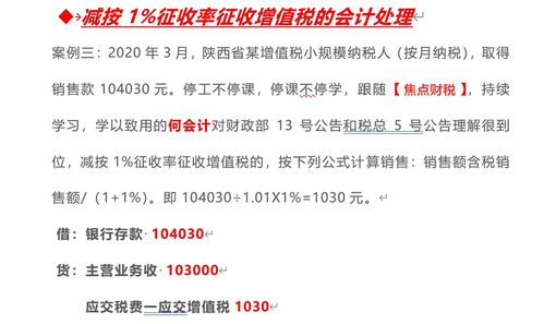 1 直接減征 例如:企業(yè)處理未曾抵扣進(jìn)項(xiàng)稅額的使用過的固定資產(chǎn),處理凈值額10300元。稅法規(guī)定是按照3%的征收率簡(jiǎn)易征收,可以享受減按2%征收的優(yōu)惠政策。