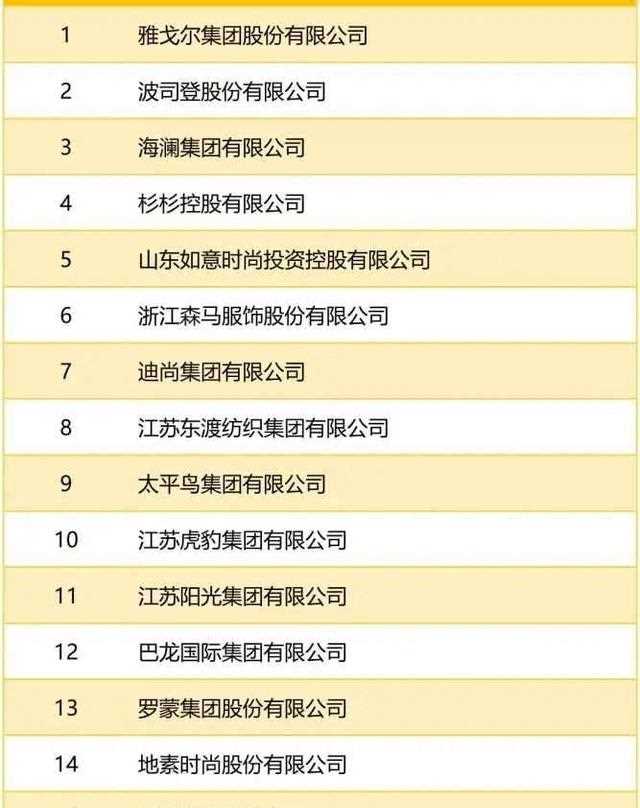 在營(yíng)業(yè)收入百?gòu)?qiáng)榜中,寧波企業(yè)表現(xiàn)搶眼,前五強(qiáng)中寧波占三強(qiáng),前百?gòu)?qiáng)中共9家甬企上榜。具體看:前十強(qiáng)中,除居榜首的雅戈?duì)柾?,杉杉控股位居?位、太平鳥(niǎo)集團(tuán)排第5位。前20強(qiáng)中,羅蒙集團(tuán)排名第15位;獅丹努排第17位。另外,寧波培羅成集團(tuán)排52位,洛茲服飾科技排54位,寧波博洋服飾集團(tuán)排59位,浙江愛(ài)伊美服飾排77位。