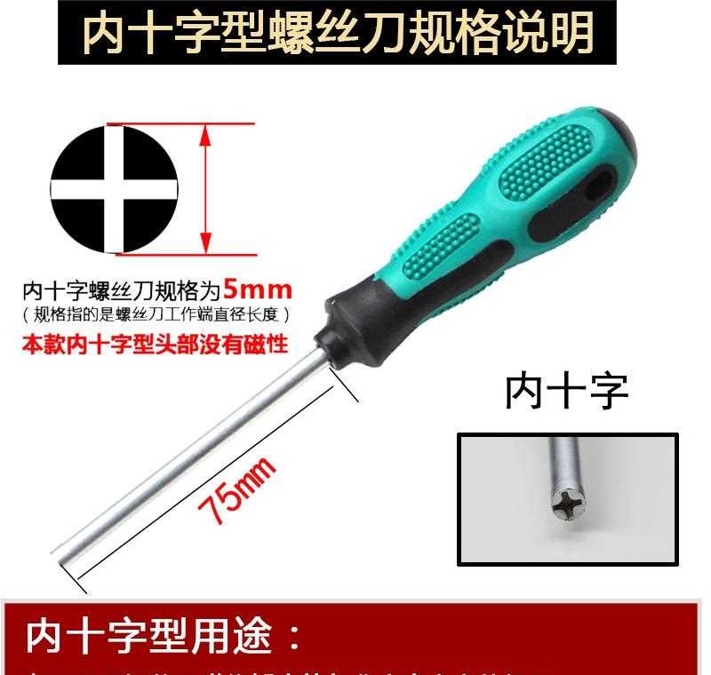 內(nèi)十字螺絲刀相對于普通十字螺絲刀,刀頭的十字是凹進(jìn)去,使用非常少,常用只有刀頭直徑是5mm的規(guī)格。