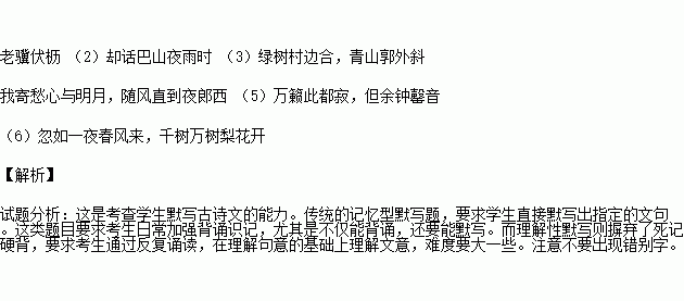 (5)《芙蓉樓送辛漸二首》王昌齡 寒雨連天夜入湖,平明送客楚山孤。洛陽親友如相問,一片冰心在玉壺。