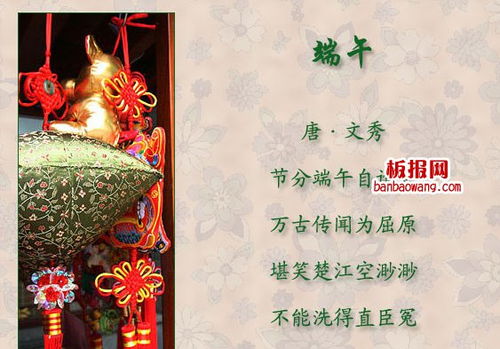 但愿人長久,千里共嬋娟。端午節(jié)的詩句: 端 午 (唐)文 秀 節(jié)分端午自誰言,萬古傳聞為屈原; 堪笑楚江空渺渺,不能洗得直臣冤。