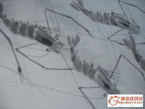再以后,他在觀察蝦的過程中,將蝦的進(jìn)退,游的急緩,甚至斗毆,跳躍等等情態(tài)統(tǒng)統(tǒng)收于筆端。更于筆墨變化上增加變化,使蝦體有了透明感。他在畫蝦的頭胸部時(shí)先用小勺舀清水滴在蘸了淡墨的筆腹上,使 之有了硬殼般的感覺。通過觀察,強(qiáng)調(diào)腹部第三節(jié)的拱起, 很好地表現(xiàn)了蝦體的曲直 ,彈 跳 的姿勢(shì), 因蝦的跳躍全靠腹部,這樣蝦就畫得更生動(dòng)了。他又將蝦鉗的前端一節(jié)畫粗,筆力得以體現(xiàn)。最令人叫絕的是他在蝦的頭胸部的淡墨未干之際加上一筆濃墨,立刻增加了透明感,也使中國畫的筆墨味道更濃了。蝦的眼睛也由原來的小黑點(diǎn)兒變成橫點(diǎn)兒,這是為了更好的表現(xiàn)蝦的神情而加以夸張的。但是運(yùn)用的恰如其分,大家見了并不以為怪。