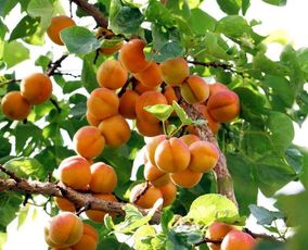 3、杏樹熟透了。那些掛在樹上的單個杏像小燈籠,那些一簇簇一串串的像只火把。金黃的杏子、深綠的杏子、橙紅的杏子,交相輝映。