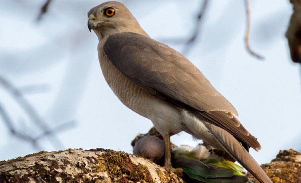 體形比蒼鷹小得多,為小型猛禽,因淡灰褐色耳羽而得名。視覺敏銳,一旦在空中發(fā)現(xiàn)林間和地面獵物,就以箭般速度撲擊,用利爪抓住獵物再度起飛,到僻靜處撕食。通常很安靜,在繁殖地偶爾發(fā)出似笛聲的kyeew,叫聲短促而清晰,不斷重復(fù)不止。