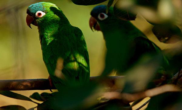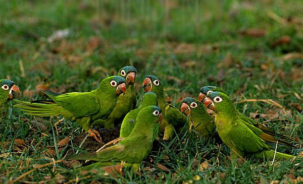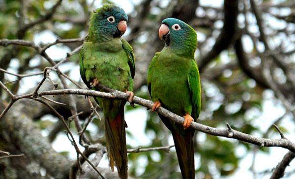 藍(lán)冠錐尾鸚鵡:別名綠鸚哥_藍(lán)冠鸚哥_尖尾錐尾鸚鵡,為鸚形目、鸚鵡科、錐尾鸚哥屬鳥類,原產(chǎn)于南美洲玻利維亞東部、巴拉圭、巴西、烏拉圭和阿根廷。主要棲息于開闊地區(qū),充滿棘叢和樹木的平原以及森林的邊緣地區(qū),偶爾也會(huì)到農(nóng)耕區(qū)覓食。1818年命名,共5個(gè)亞種。有時(shí)候也會(huì)到農(nóng)耕區(qū)覓食榖類和水果,而常常造成相當(dāng)大的損壞,因此當(dāng)?shù)剞r(nóng)民非常討厭它們。