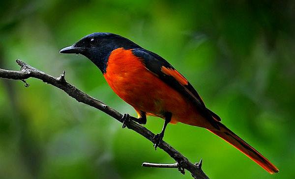 赤紅山椒鳥:別名紅十字鳥_朱紅山椒鳥,為雀形目、山椒鳥科、山椒鳥屬鳥類,原產(chǎn)于亞洲南部,中國、印度、斯里蘭卡、孟加拉、緬甸、越南、老撾、泰國、馬來西亞、菲律賓、印尼等地。我國主要分布于西藏東南部,往東經(jīng)云南、貴州、廣西、廣東、福建、江西和湖南南部和海南島等地。棲息于海拔2100m以下的山地和平原的雨林、季雨林、次生闊葉林以及也見于松林、稀樹草地或開墾的耕地。1781年命名,共3個亞種。