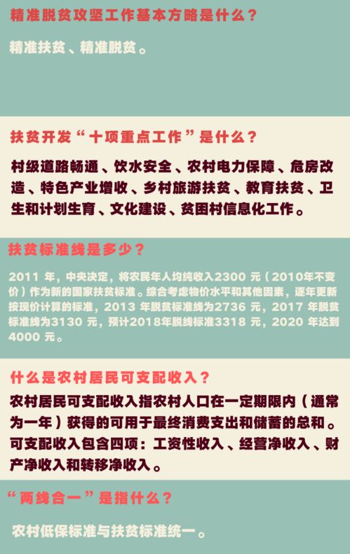3、精準(zhǔn)扶貧的“四個(gè)到村到戶”是什么?答:基礎(chǔ)扶貧到村到戶、產(chǎn)業(yè)扶貧到村到戶、教育扶貧到村到戶、金融扶貧到村到戶。4、精準(zhǔn)扶貧的“三個(gè)深度融合”是什么?答:一是扶貧攻堅(jiān)與雙聯(lián)行動(dòng)深度融合,二是扶貧開(kāi)發(fā)與農(nóng)業(yè)發(fā)展方式轉(zhuǎn)變深度融合,三是扶貧攻堅(jiān)與社會(huì)扶貧濟(jì)困深度融合。