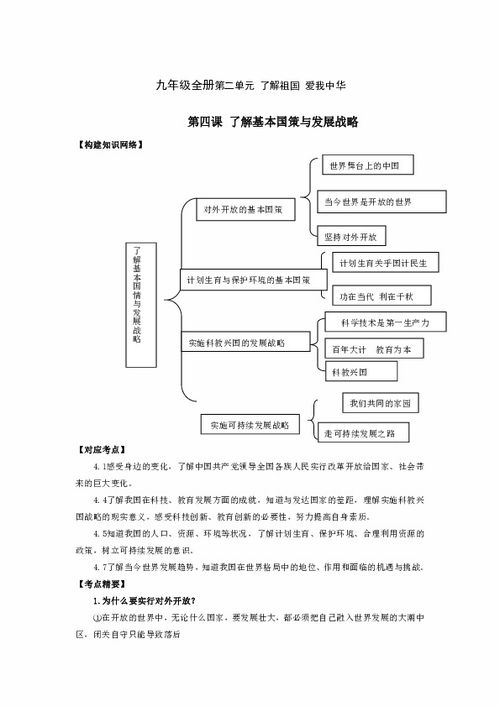 二、“基本”類1、我國的基本國情是我國正處于并將長期處于社會(huì)主義初級(jí)階段。2、我國的基本國策有對(duì)外開放、計(jì)劃生育、保護(hù)環(huán)境。