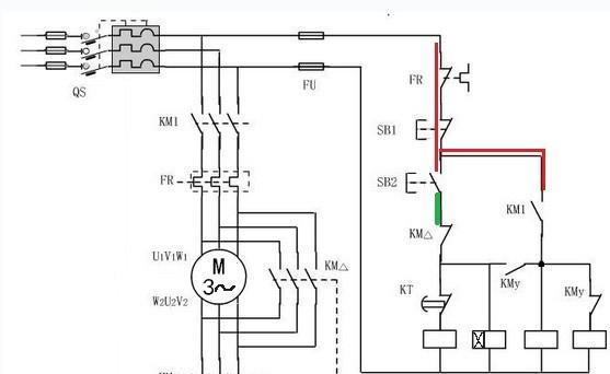 比如,我們在接星三角降壓啟動控制線時,我們可以先把紅色方框內的全部接完,最后再把所有線圈的另外一端并聯(lián)起來。這樣不容易接錯(即錯把電源另外一端接到進線上),出現(xiàn)短路情況。